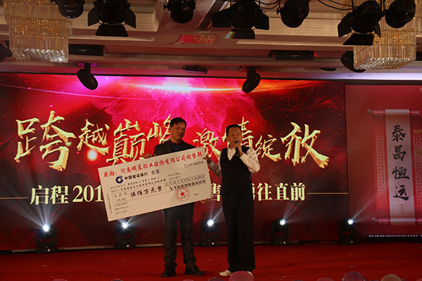 一分耕耘一分收獲,2017年成績的背后,離不開每一位明泰人的辛勤付出和努力拼搏。是他們的奮發(fā)向前、永不言敗,在不斷的摸索和奉獻(xiàn)中收獲了今天的喜人成績。明泰公司為表達(dá)對明泰人銳意進(jìn)取、忠義奉獻(xiàn)的感恩之情,在本次年會上的重要環(huán)節(jié)——頒獎典禮中,特為他們準(zhǔn)備了“最佳貢獻(xiàn)團(tuán)隊獎、“最佳團(tuán)隊獎”、“優(yōu)秀員工”、“最佳新人獎”,本年度較大的獎項500萬大獎由董事長為賀總頒獎,他們?yōu)楣净锇闃淞⒘税駱?,讓大家感動滿滿、備受鼓舞!