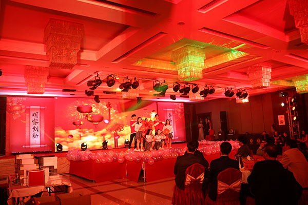 年會伊始,明泰人共同宣誓后,賀總?cè)记橹罗o總結(jié)2017的奮斗與收獲,展望2018的美好前景。之后明泰年會匯演正式開始,年會節(jié)目精彩絕倫,首先開場的舞獅子、財神撒紅包引領(lǐng)年會的熱潮,舞蹈《好運(yùn)來》再添喜氣,唯美歌曲《好時光》,活力四射的舞蹈《Four A R》,l更有朗誦講述明泰20年風(fēng)雨歷程,《肚皮舞》展示異域風(fēng)情,《變臉》弘揚(yáng)中華文化,捧腹大笑的小品《吃面》,你畫我猜的游戲環(huán)節(jié).....別出心裁的創(chuàng)意配合豐富多彩的表演,將整場晚會推向了一個又一個高潮!