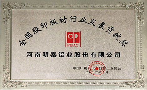 從2005年至今,公司PS版基/CTP版基銷量全國(guó),在高端市場(chǎng)的占有率也已達(dá)80%以上。在2012的全國(guó)印刷行業(yè)協(xié)會(huì)上,河南明泰鋁業(yè)獲得了發(fā)展貢獻(xiàn)獎(jiǎng)。